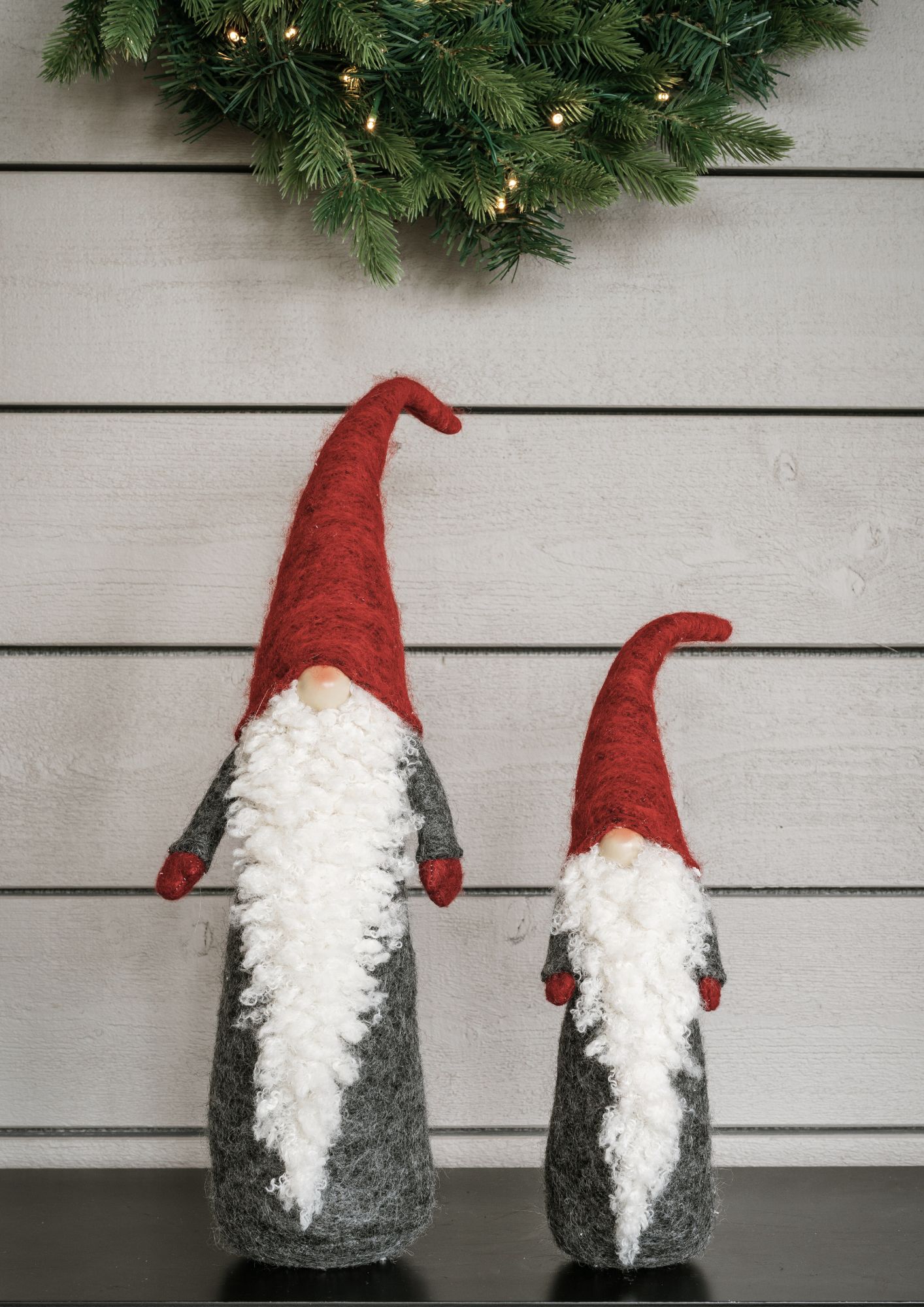 Klassisk tomte med röd luva och långt lurvigt skägg.