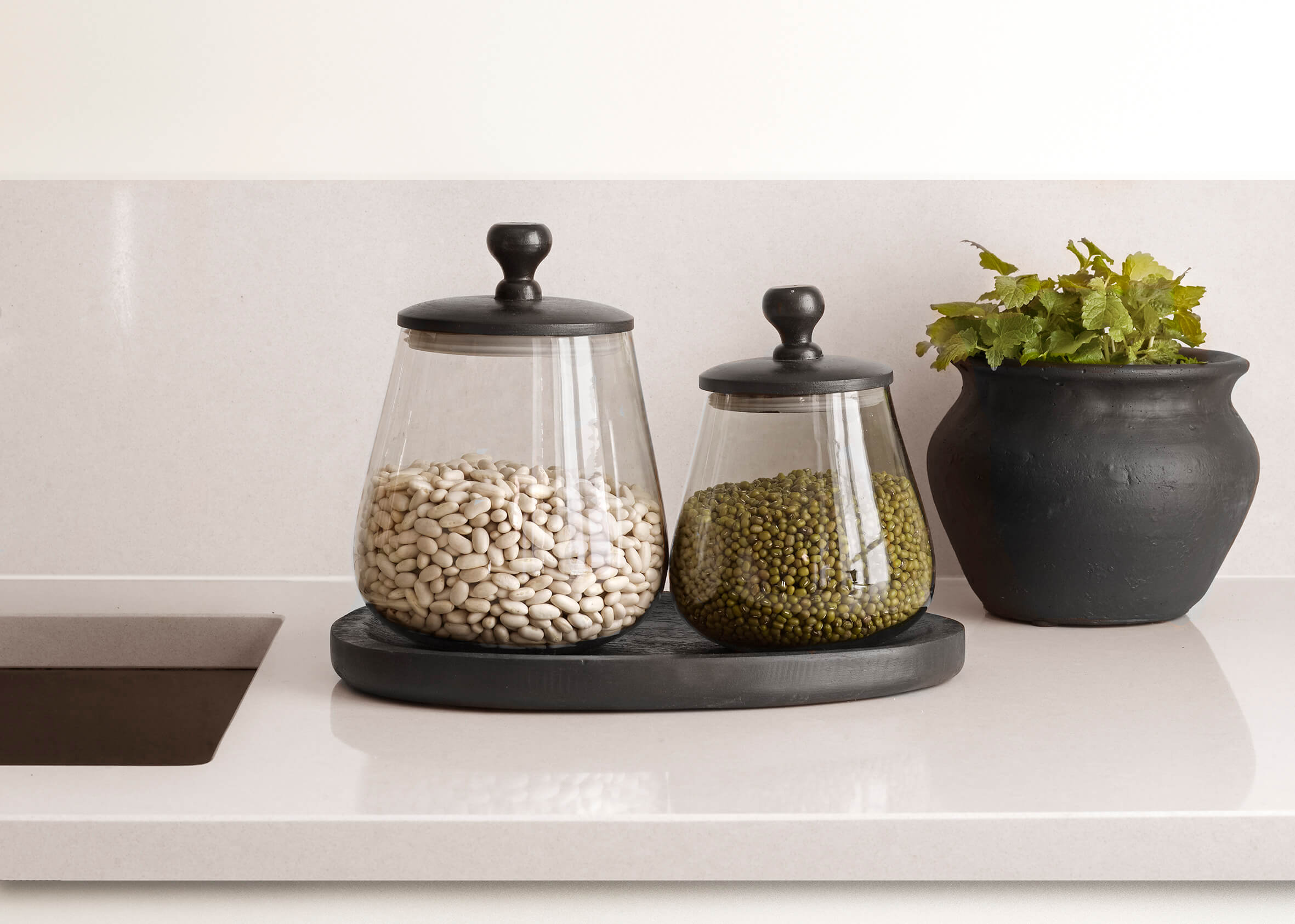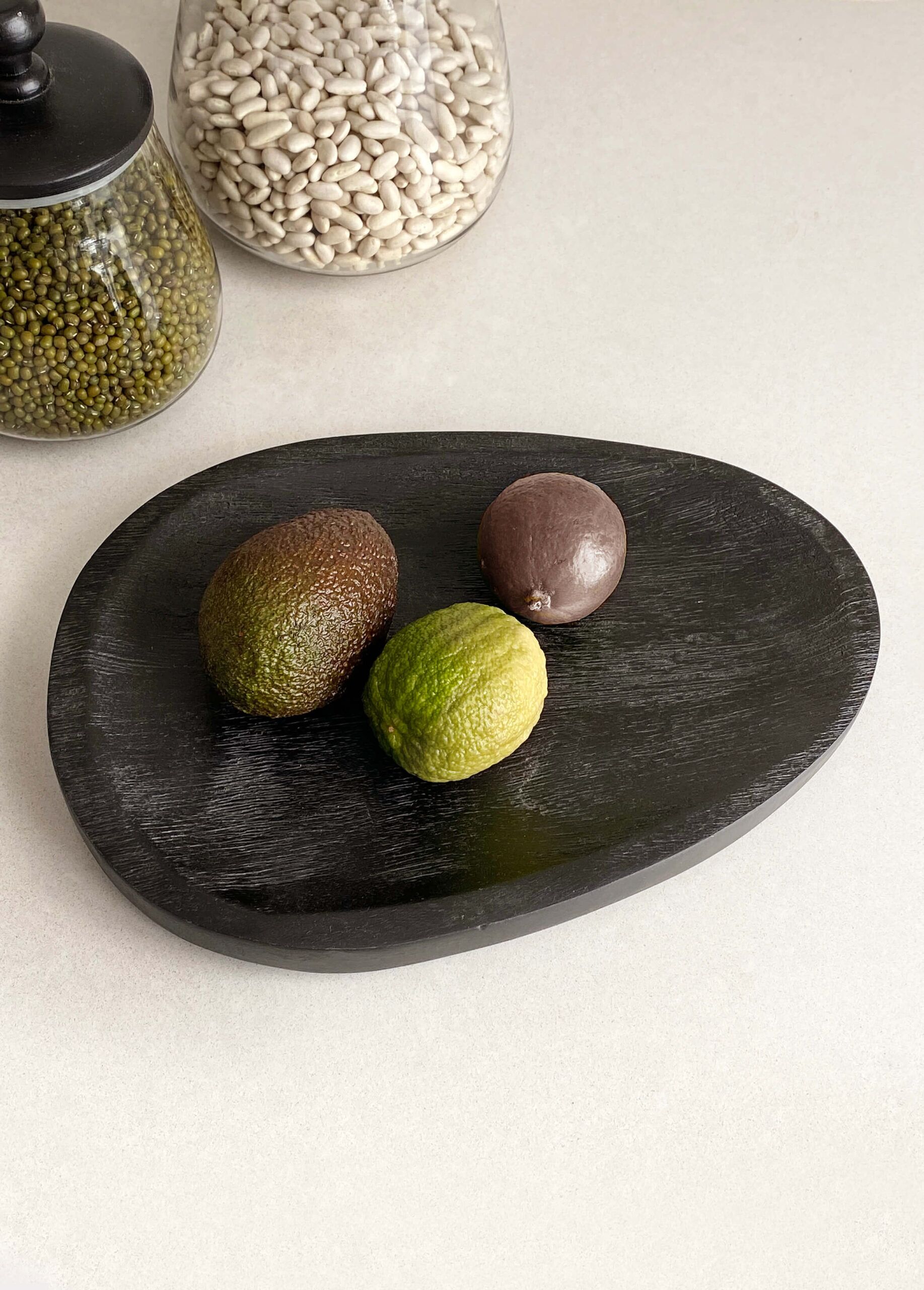 Bricka i svart trä. Fin att ha i köket och sätta oljor och kryddor på. En fin detalj på bordet i att ha ljus på. Fin att kombinera tillsammans med burkarna Zulu.