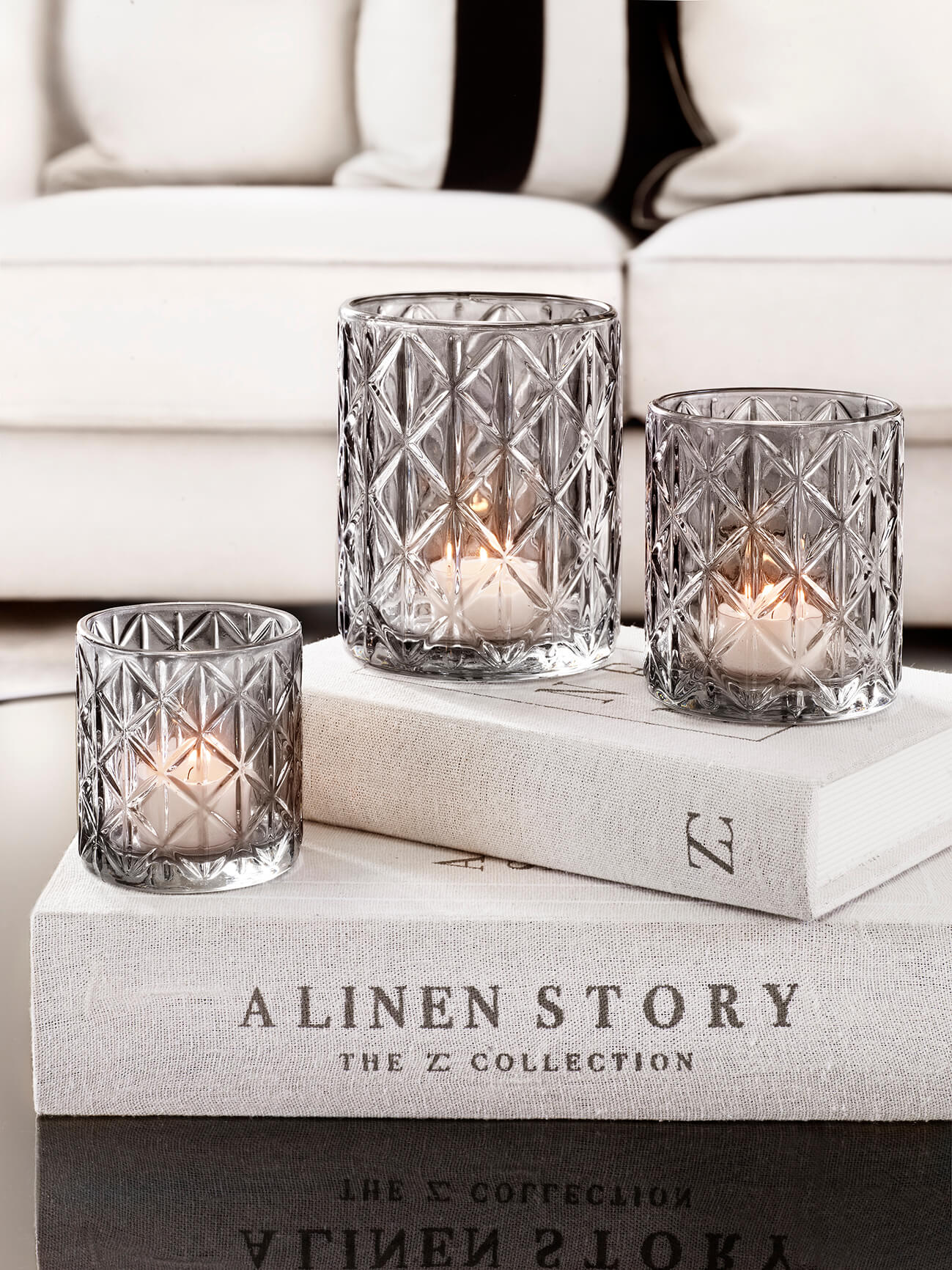 Coffee Table Books i stilren design. Ett nytt sätt att förvara dina ljus, fjärrkontroller eller smycken på ett lyxigt och stilfullt sätt. Böckerna är klädda i linnetyg med text. Passar utmärkt på soffbordet, sideboardet, i badrummet eller på nattduksbordet.