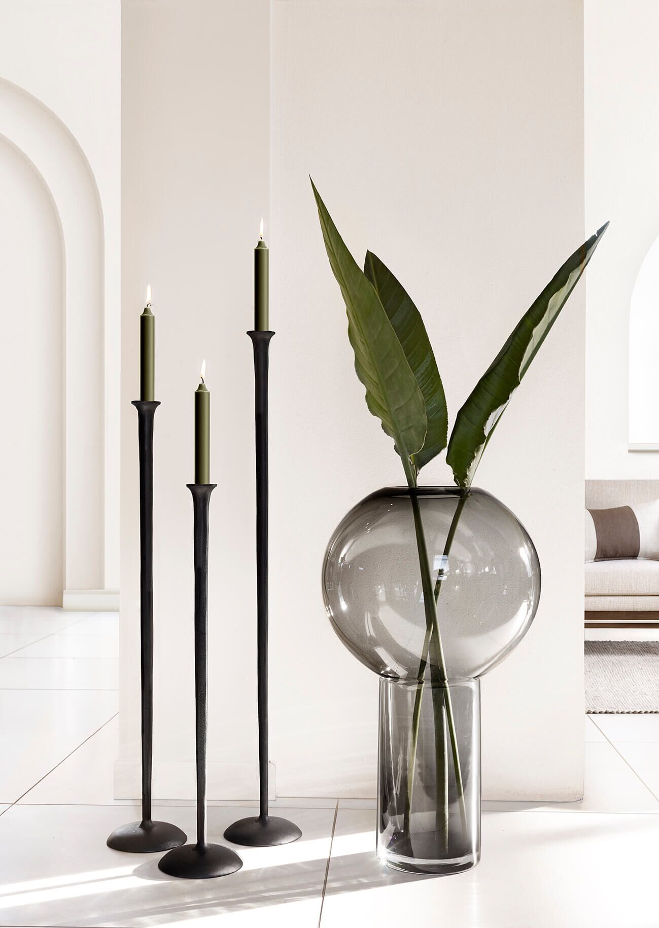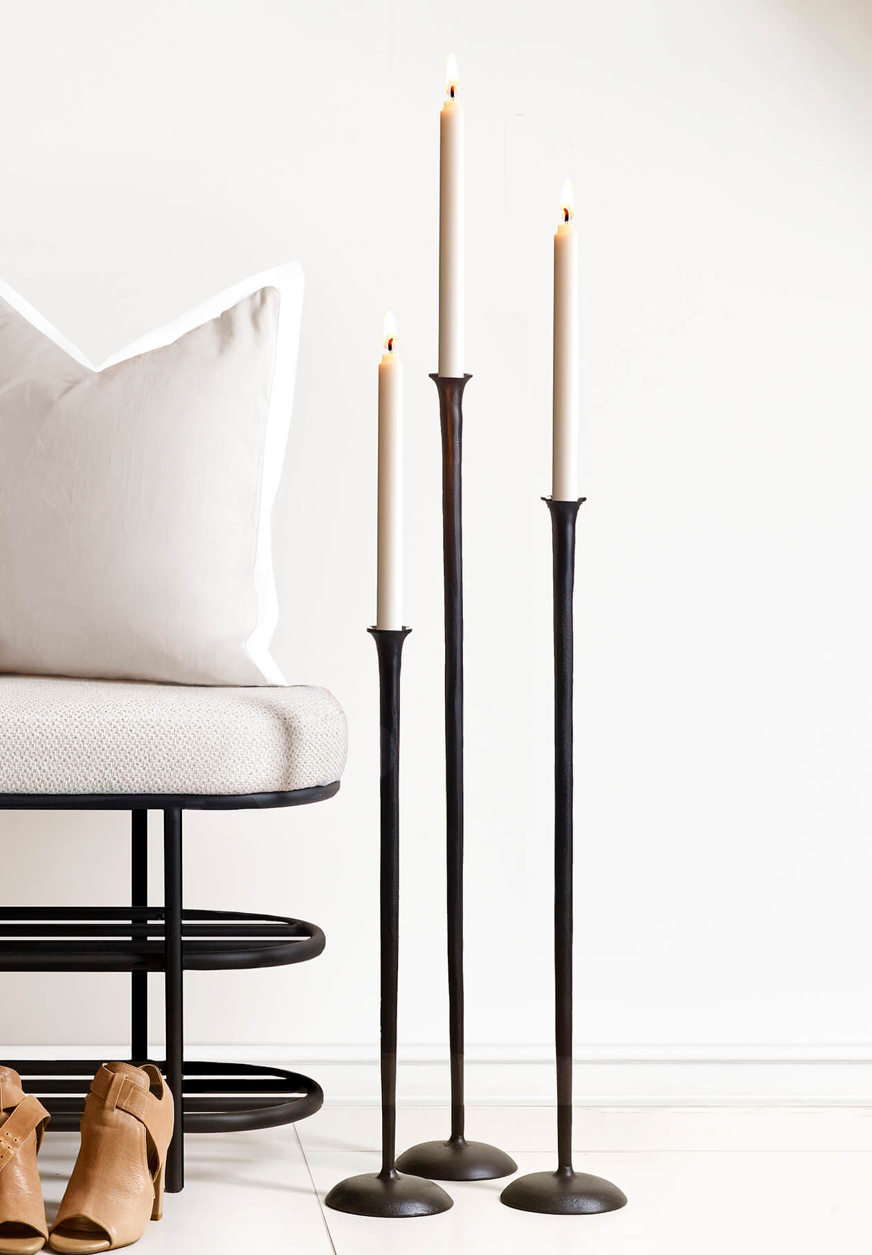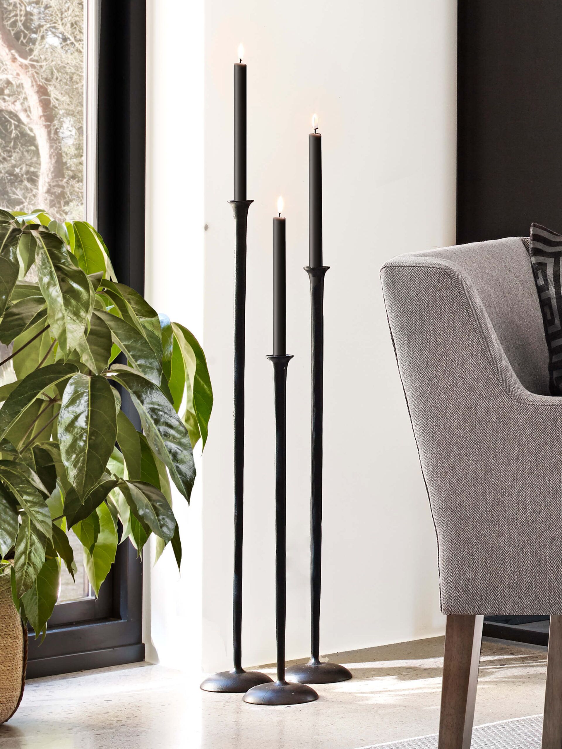 Populära och helt underbara golvljusstakar i svart med matt finish. Kommer i set om 3 och passar både i köket, vardagsrummet eller badrummet.