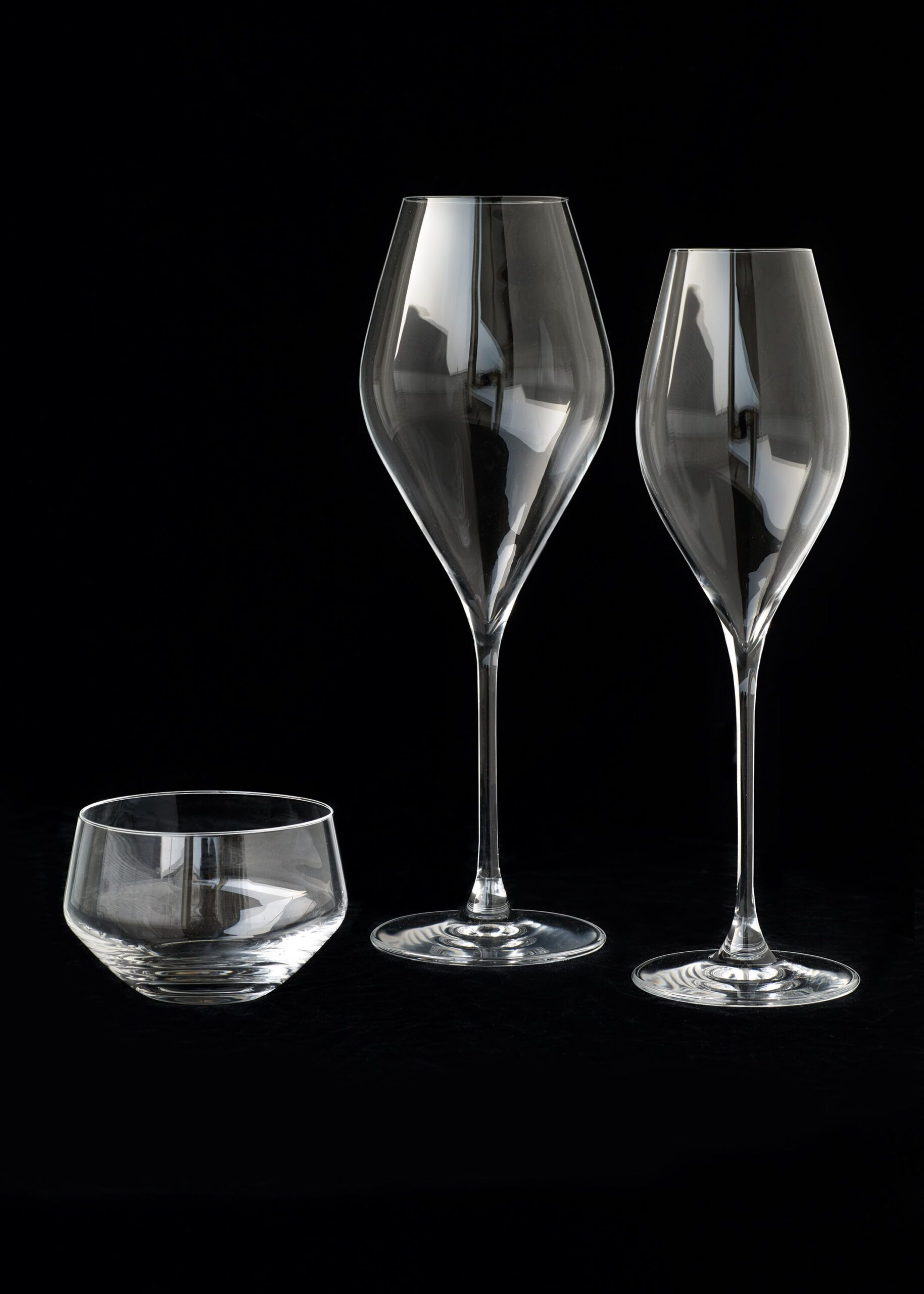 Matcha fint med vinglas och champagneglas i samma serie. Genomskinligt glas.