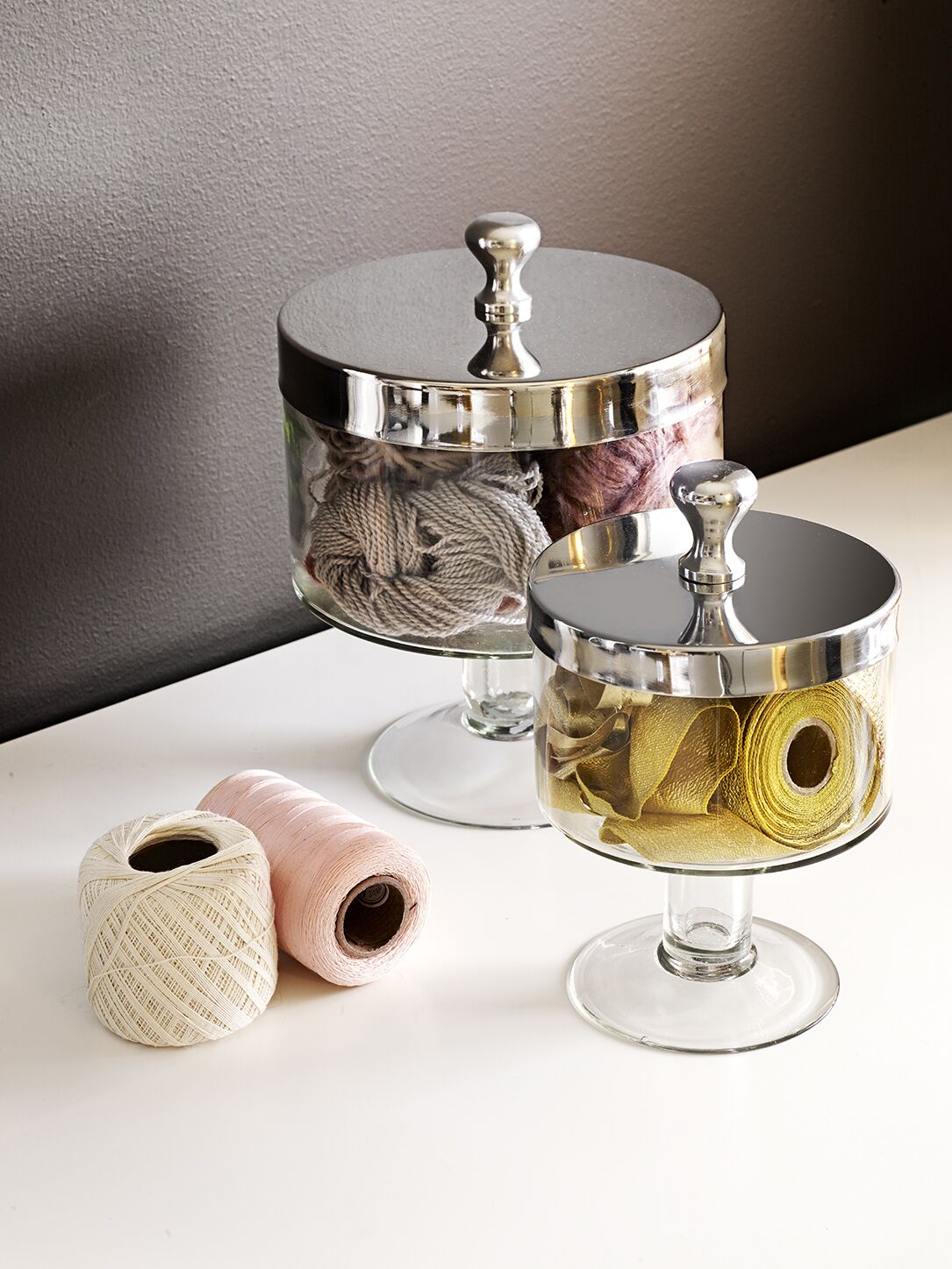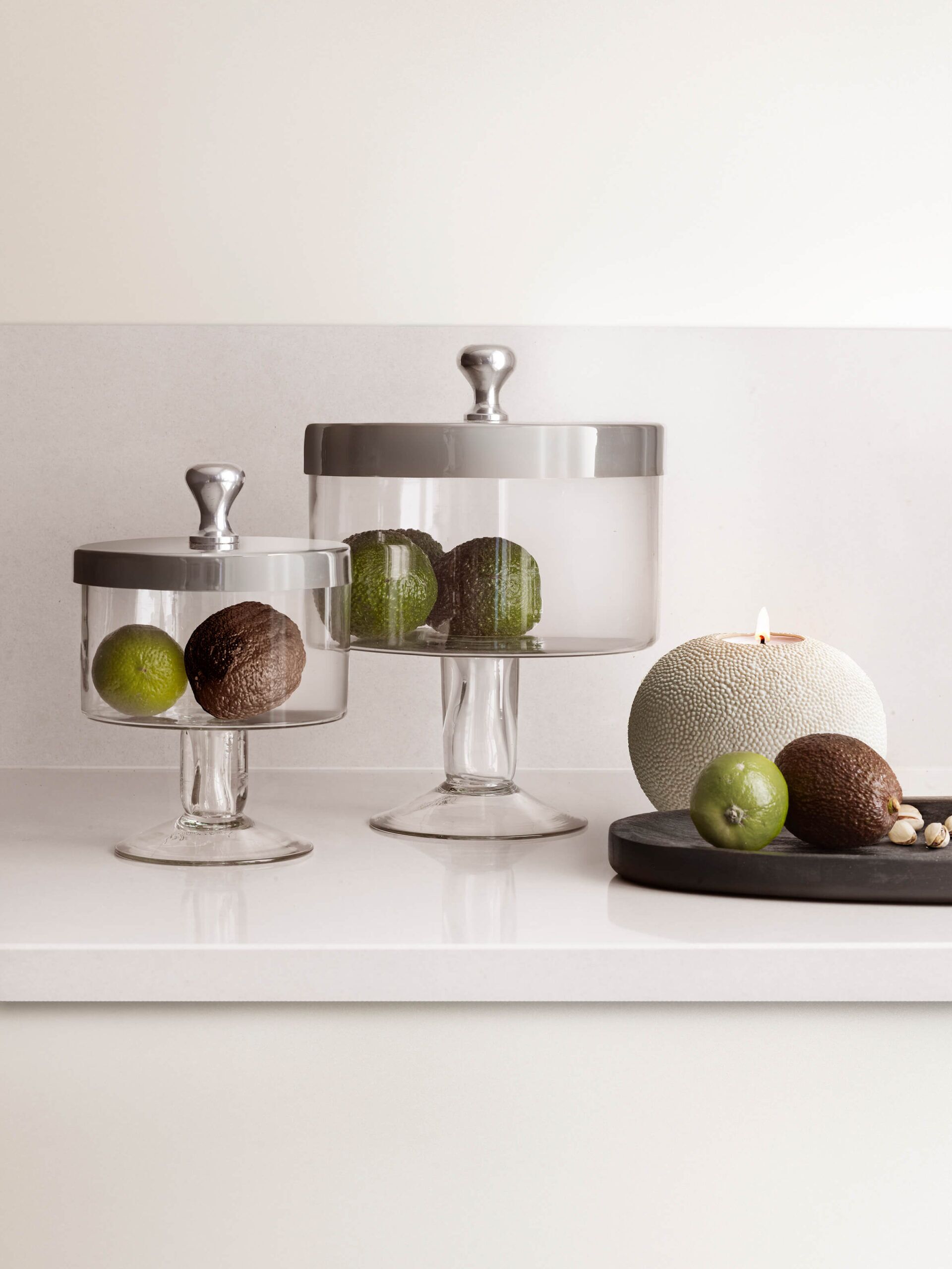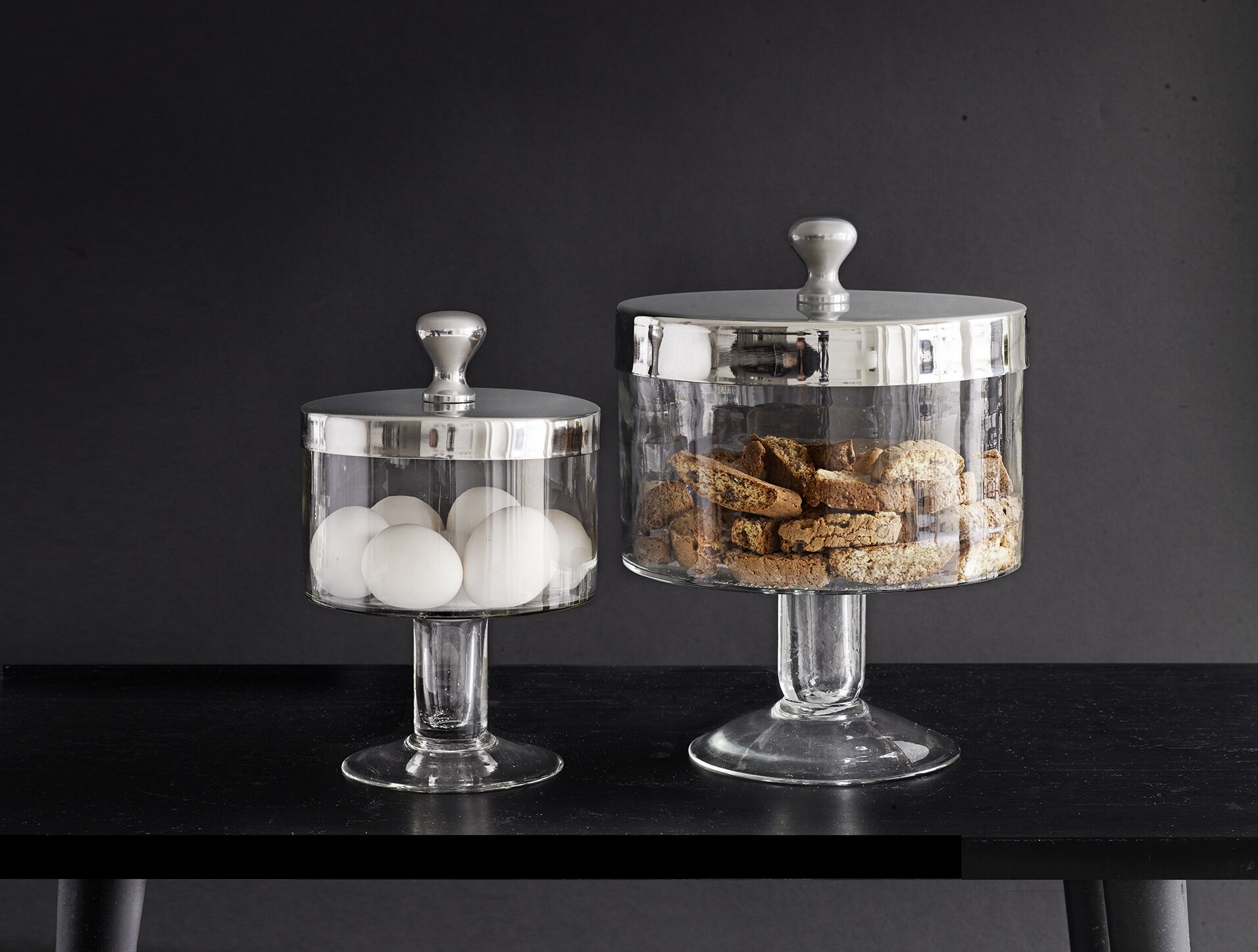 Vackert handgjorda kakburkar av glas med aluminium lock. Passar perfekt i köket.
