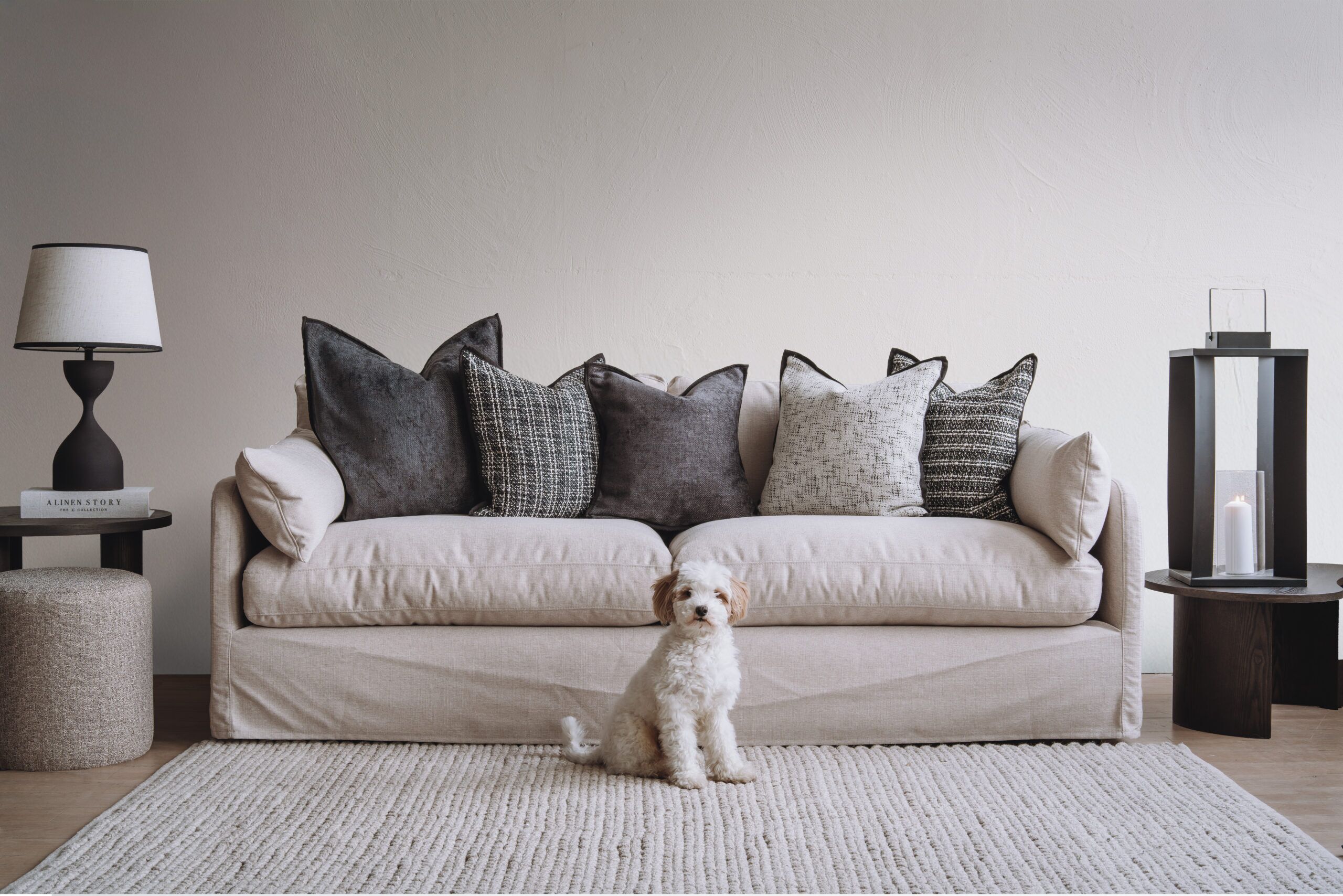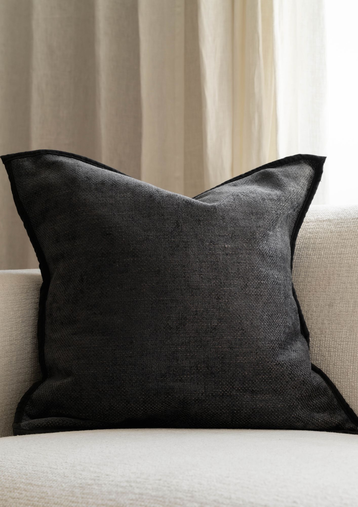 Snygg enkel kudde i lite grövre linneliknande tyg. Fin kant runt kudden ger ett elegant utseende. Finns i andra färger och storlekar.