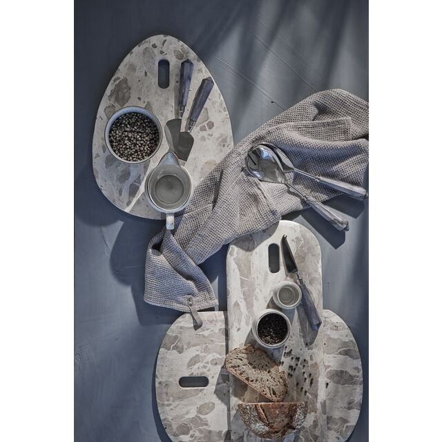Ellia-seriens kännetecken är den vackra marmorn. Varje bricka och bordsdekoration är utsågad ur en stor bit marmor. Skickliga hantverkare skär och formar marmorn till antingen en vacker bricka eller en praktisk bordsdekoration. Denna metod resulterar i att utseendet och storleken varierar från produkt till produkt – din bricka eller bordsdekoration från Lene Bjerre får sitt eget uttryck!