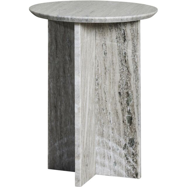 Ge din inredning en touch av lyx och modernitet med detta eleganta Elivinne sidobord från Lene Bjerre. Bordet har en rund bordsskiva och en elegant kryssfot, med en vacker marmorlook inspirerad av natursten. Dess kompakta storlek gör det perfekt som soffbord, nattduksbord eller en dekorativ detalj bredvid soffan.