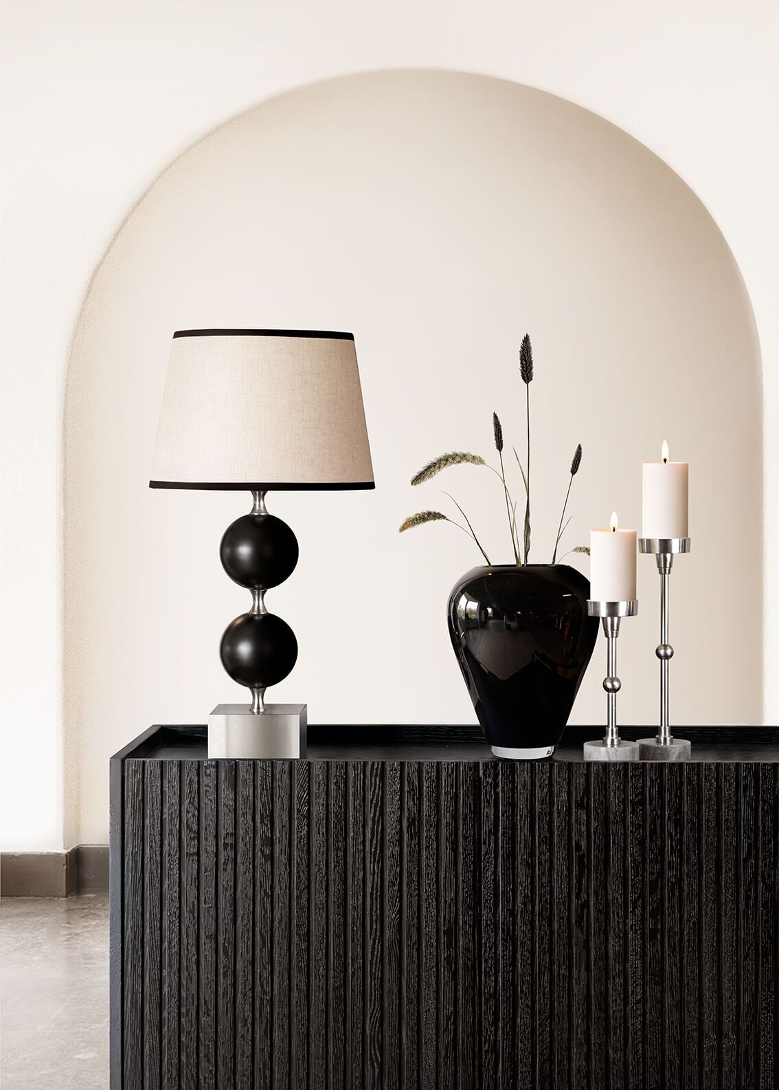 Trendiga Halifax sideboard i svartlackad ek med svarta metallben i rak elegant profil. Ytan består av massiva ekribbor på faner. Knoppar i guldfärgad borstad metall medföljer och du väljer själv om du vill sätta dit dem eller ha utan, Dörrarna har mjukstängande soft-close funktion och innanför finns flyttbara hyllplan.