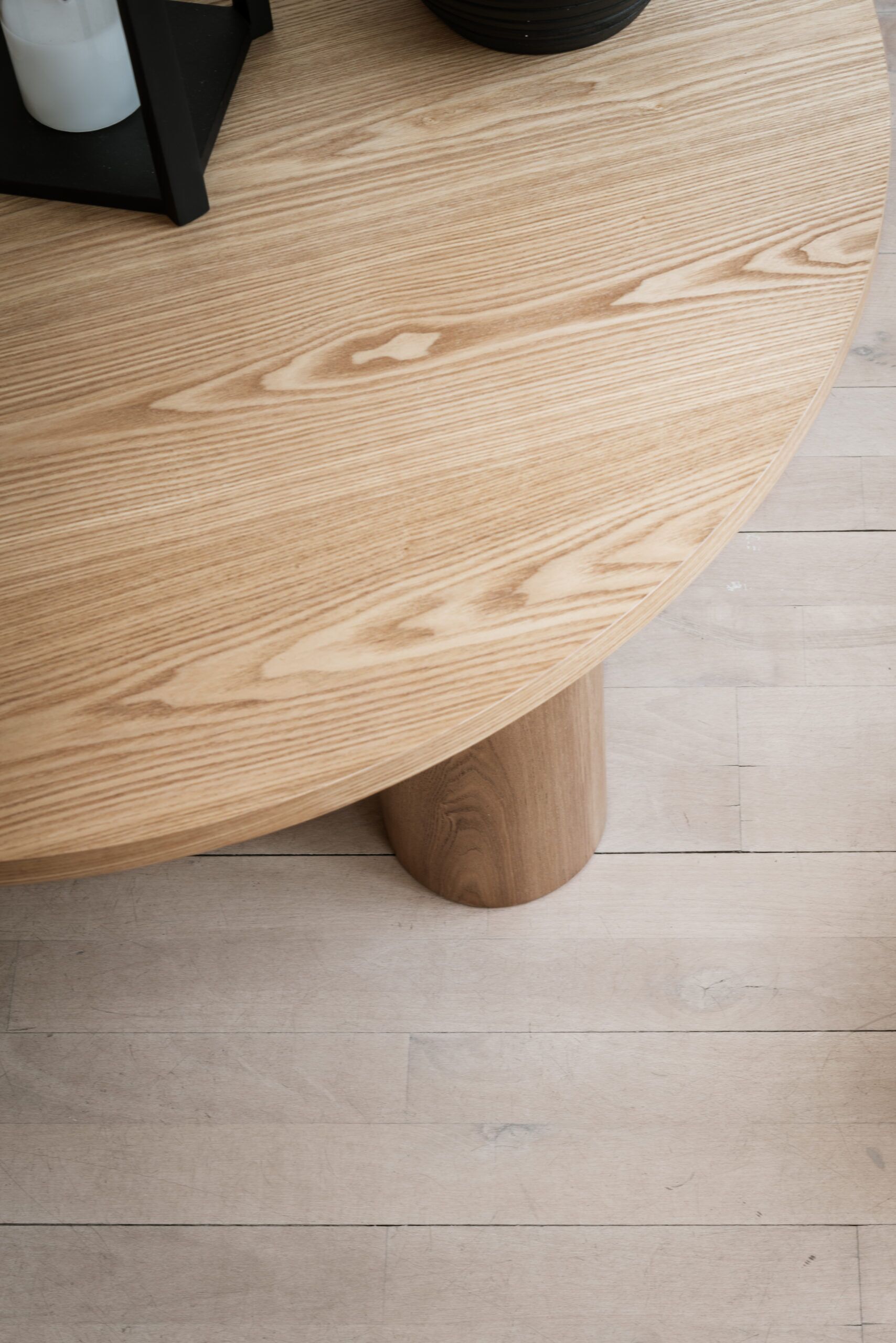 Rockland! Trendigt hållbart bord i natur. Den runda formen är lättplacerad och mjukar upp rummet. Fint ensamt eller tillsammans med den mindre modellen. Bordet finns även i mellanbrunt (valnöt) svart och mörkbrunt. Levereras nedmonterat i platt kartong. Torkas av med fuktig trasa.