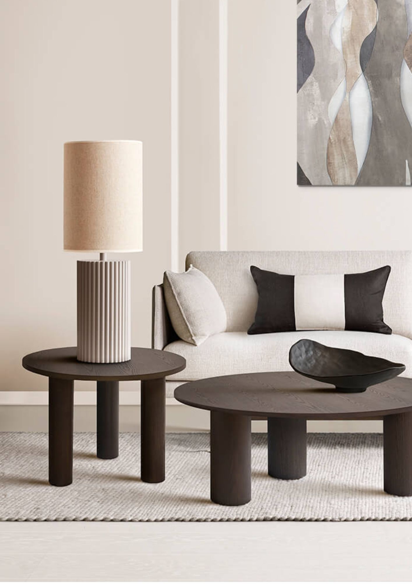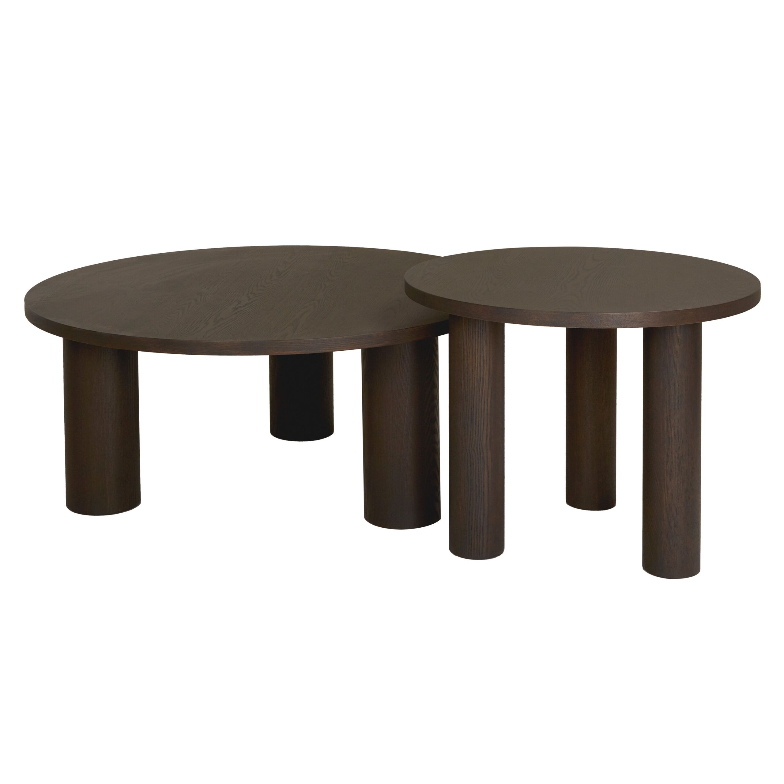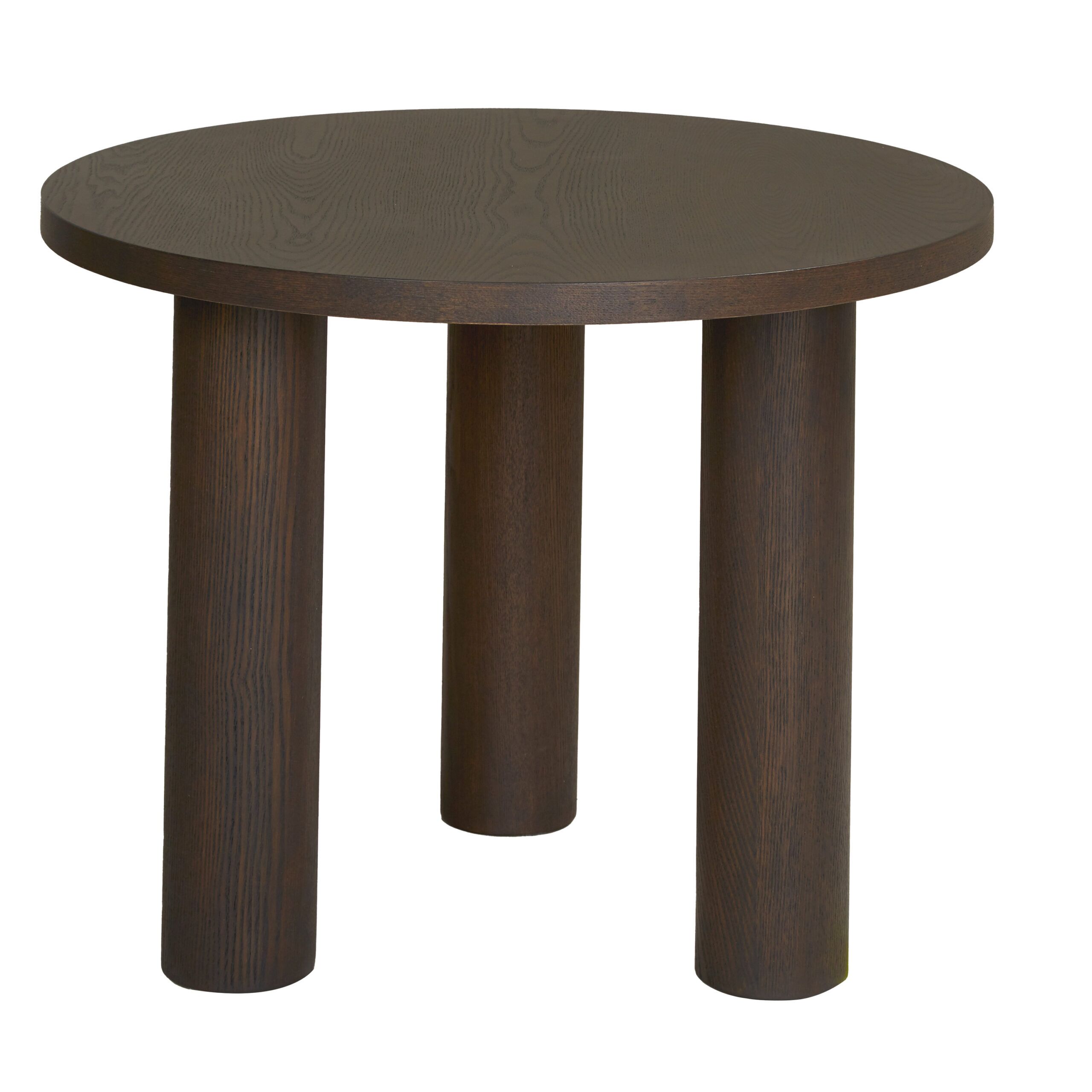 Rockland! Trendigt hållbart bord. Den runda formen är lättplacerad och mjukar upp rummet. Fint ensamt eller tillsammans med den större modellen. Betsat i brun askfanér och mdf. Levereras nedmonterat i platt kartong. Torkas av med fuktig trasa.