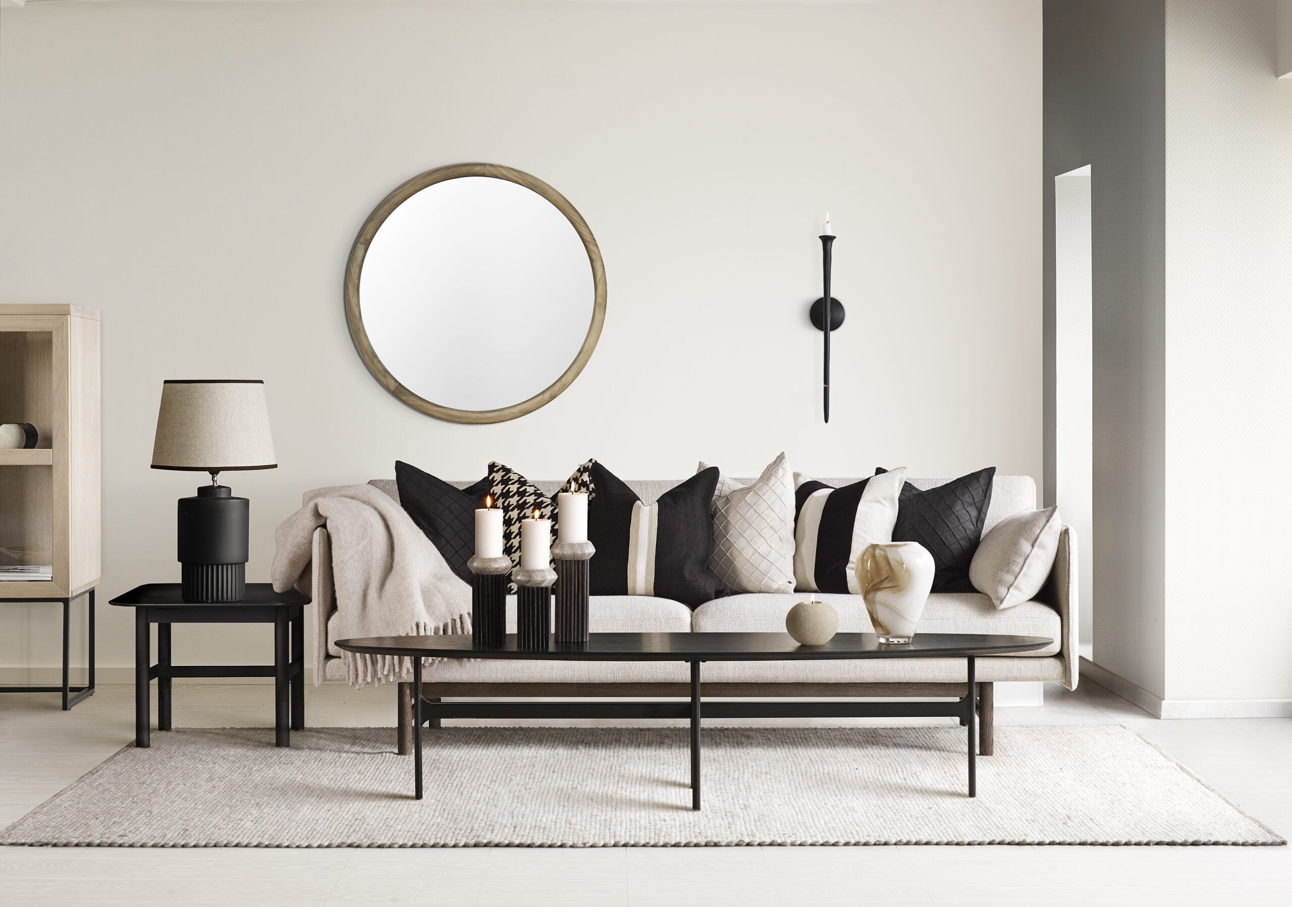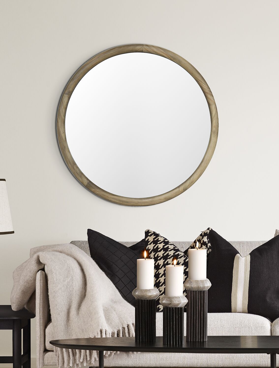 Tidlös spegel med en tidlös ram i trä, smälter fint in i höstens mysiga färger.