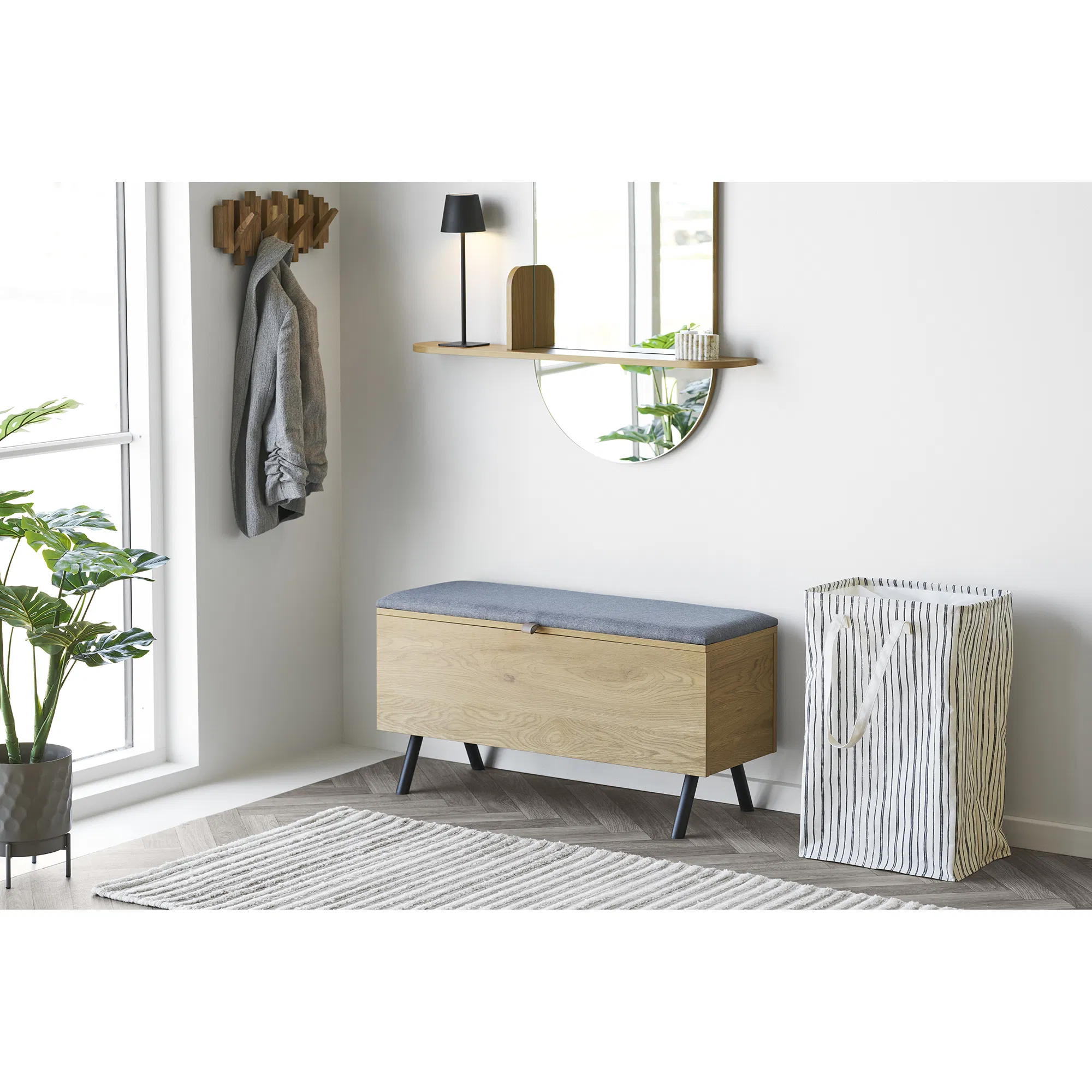 Snygg tvättkorg i tyg. Bra förslutning upptill gör att det ser prydligt ut.
