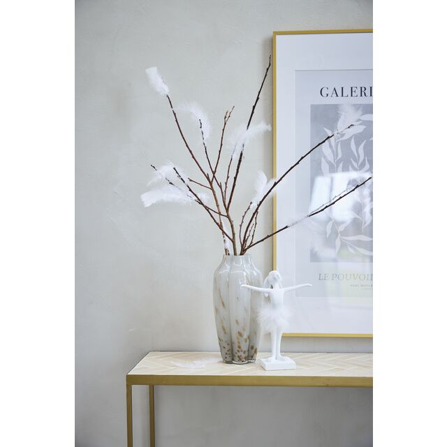 Mara-vasen har en unik, tidlös design som sömlöst passar in i vilken heminredning som helst. Oavsett om du använder den för färska blommor, konstgjorda blommor eller helt enkelt som ett dekorativt föremål, har denna vas mångsidigheten att komplettera vilken miljö som helst. Njut av den förfining och skönhet som denna vas kommer att ge ditt hem eller kontor – det är en liten detalj som kommer att få vilket rum som helst att kännas vackrare.